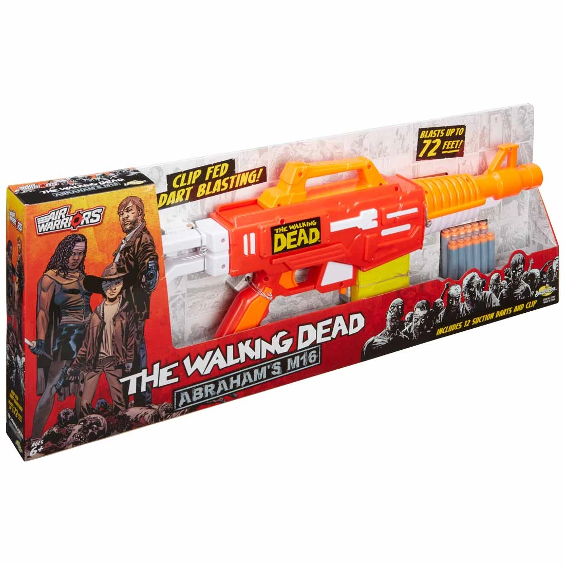 Abraham's M16 is a Buzz Bee blaster that was released in 2016 under the Air Warriors series to promote The Walking Dead comic book series.