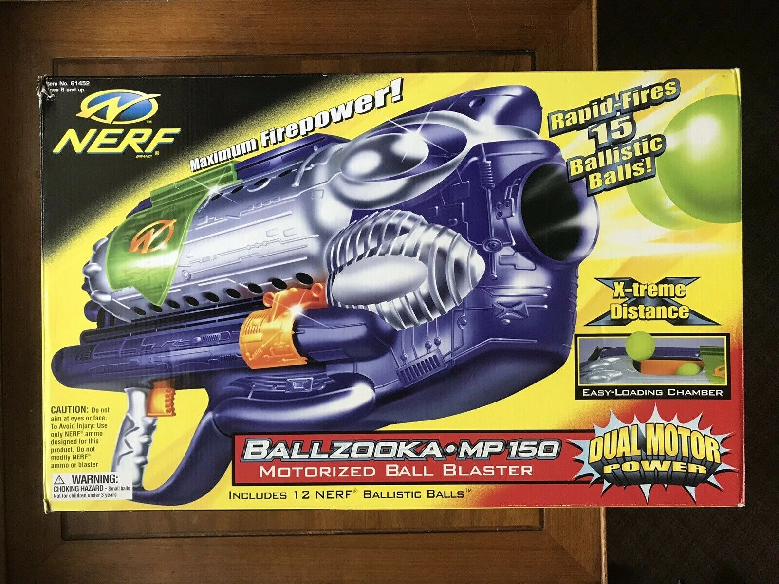 New Motorized Technology! Start the motor, press the trigger and fire up to 15 balls loaded into 3 separate chambers. Comes with 12 Nerf Ballistic Balls and an adjustable shoulder strap. |