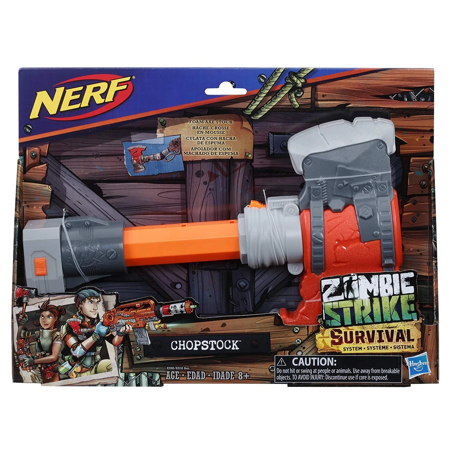 The zombie survivors are prepared for anything, with survival kits to defend against any zombie attack! The Chopstock accessory is part of the Nerf Zombie Strike Survival System, which also includes the Scravenger blaster kit (sold separately). The Chopstock accessory is a foam axe that converts to a stock. Attach it to the Scravenger blaster, or any Nerf blaster with a compatible stock attachment point, to use as a stock. Remove it and extend the handle to use it as an axe. Battlers need to adapt to changing situations when defending against the zombies, and with the Chopstock accessory, they have another way to strike back at the zombies! Blasters each sold separately. |