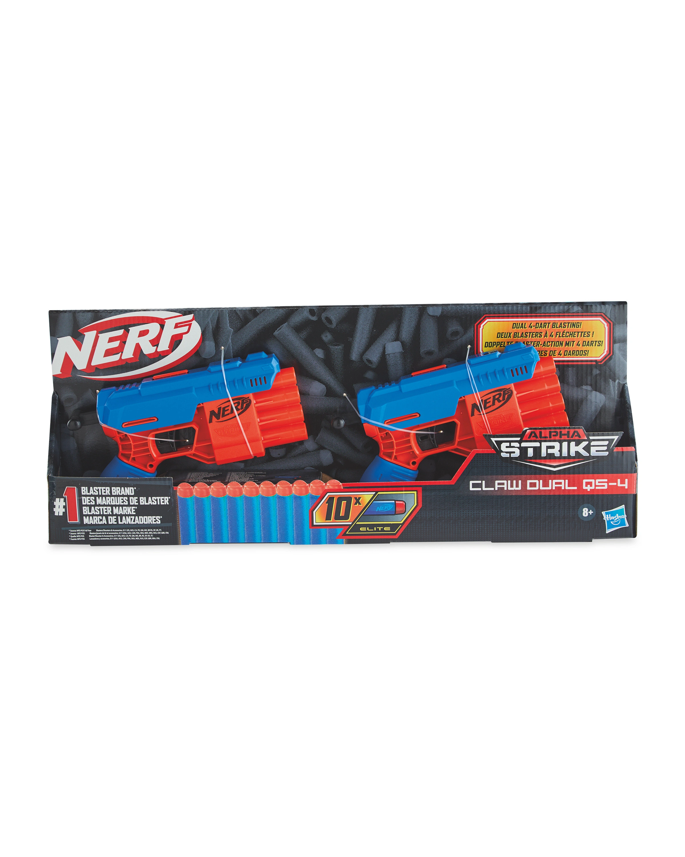 Claw Dual QS-4 is a Nerf blaster set that was released in 2021 under the Alpha Strike series.