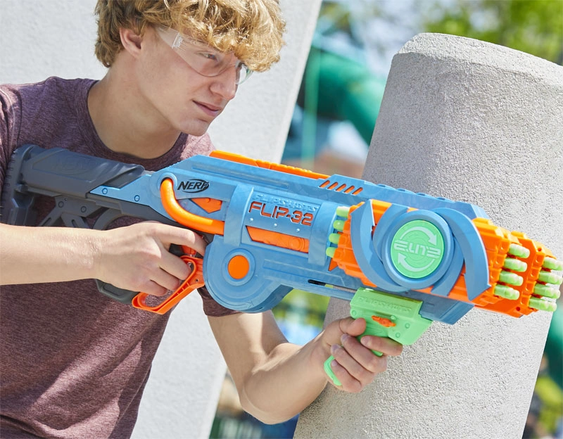 - The Flip-32 is the highest capacity front-loading Nerf blaster.