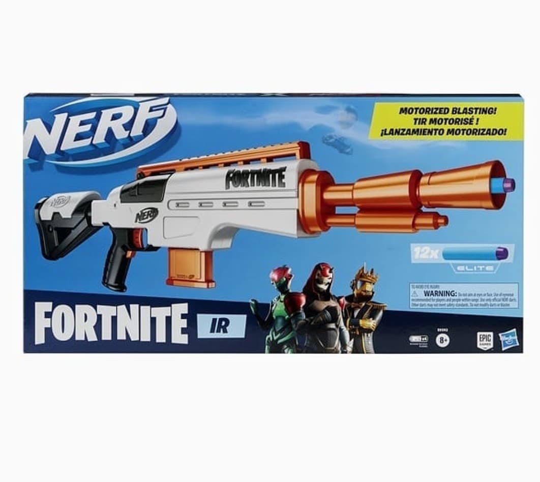 The IR is a Nerf blaster that was released in 2020 to promote the video game Fortnite. It requires four "AA" batteries to be operated.