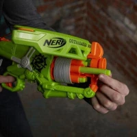 The zombies are getting stronger, and so are the survivors battling them they're inventing new battle gear and teaming up with other zombie fighters to keep striking back! Defend against the zombie hordes with the Nerf Zombie Strike Outbreaker Bow. Kids experience real crossbow action when they pull the string back with the handle. The drum holds up to 5 darts and rotates with every trigger pull to ready the next dart for firing. The bow is designed with fun details that reflect the Zombie Strike story of survivors who are creating weapons with parts they scrounge from different places. The Nerf Zombie Strike Outbreaker Bow fires 1 dart at a time and comes with 5 Zombie Strike darts. |