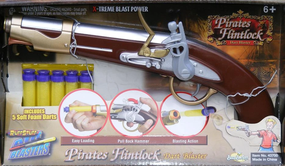 The Pirates Flintlock is a Buzz Bee blaster that was released in 2007 under the Ruff Stuff Air Blasters series.