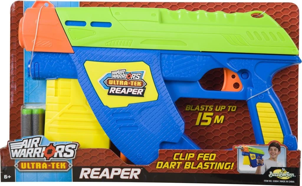 The Reaper was later re-released with updated internals, boosting its firing range claim up to seventy-two feet (twenty-two meters). This version was re-released later under the Air Warriors line in a new color scheme.
