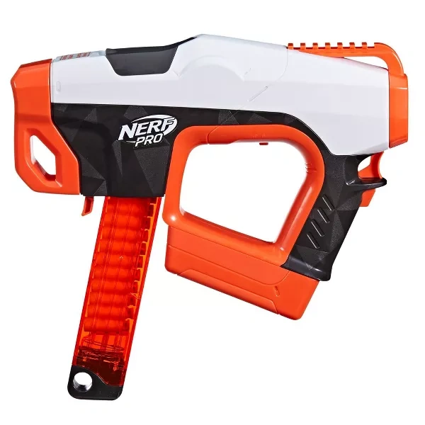 Power into Nerf pro-level competitions with the high-performance, semi automatic Nerf Pro Sender half-dart blaster designed for Nerf athletes! The premium, sport grade motorized Nerf blaster includes a 15-dart magazine and 30 Nerf Pro half-length darts. Power up the motor with the rev trigger and pull the firing trigger to unleash the Nerf Pro darts at a velocity up to 150 feet per second. Nerf Pro half-length darts are designed for extreme accuracy, distance, and velocity, and the shorter length provides a more stable trajectory and greater precision. The durable, quick-release magazine is compact and lightweight for convenient portability. Includes trigger lock. The magazine and darts are compatible with Nerf Pro blasters. They are not compatible with Nerf Pro Stryfe X blaster and Nerf Pro AccuStrike half-length dart magazines. Requires 8x 1.5v AA alkaline batteries (not included). For ages 14 and up. |