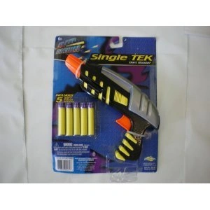 The Single Tek is a single-fire dart blaster. It has an integrated storage for three darts under the blaster's muzzle.