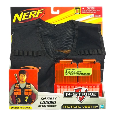 Don't be caught off guard! Be ready, no matter where or when your opponent strikes, with this awesome Tactical Vest Kit. Built to carry four Quick-Reload Clips, 12 darts, blasters and swords, your vest isn't just an accessory -- it's a line of defense! This kit comes with two clear clips and 12 Clip System darts, so you've already got ammo on-hand. Add other elements from your N-STRIKE arsenal and you're ready to take on anyone! |
