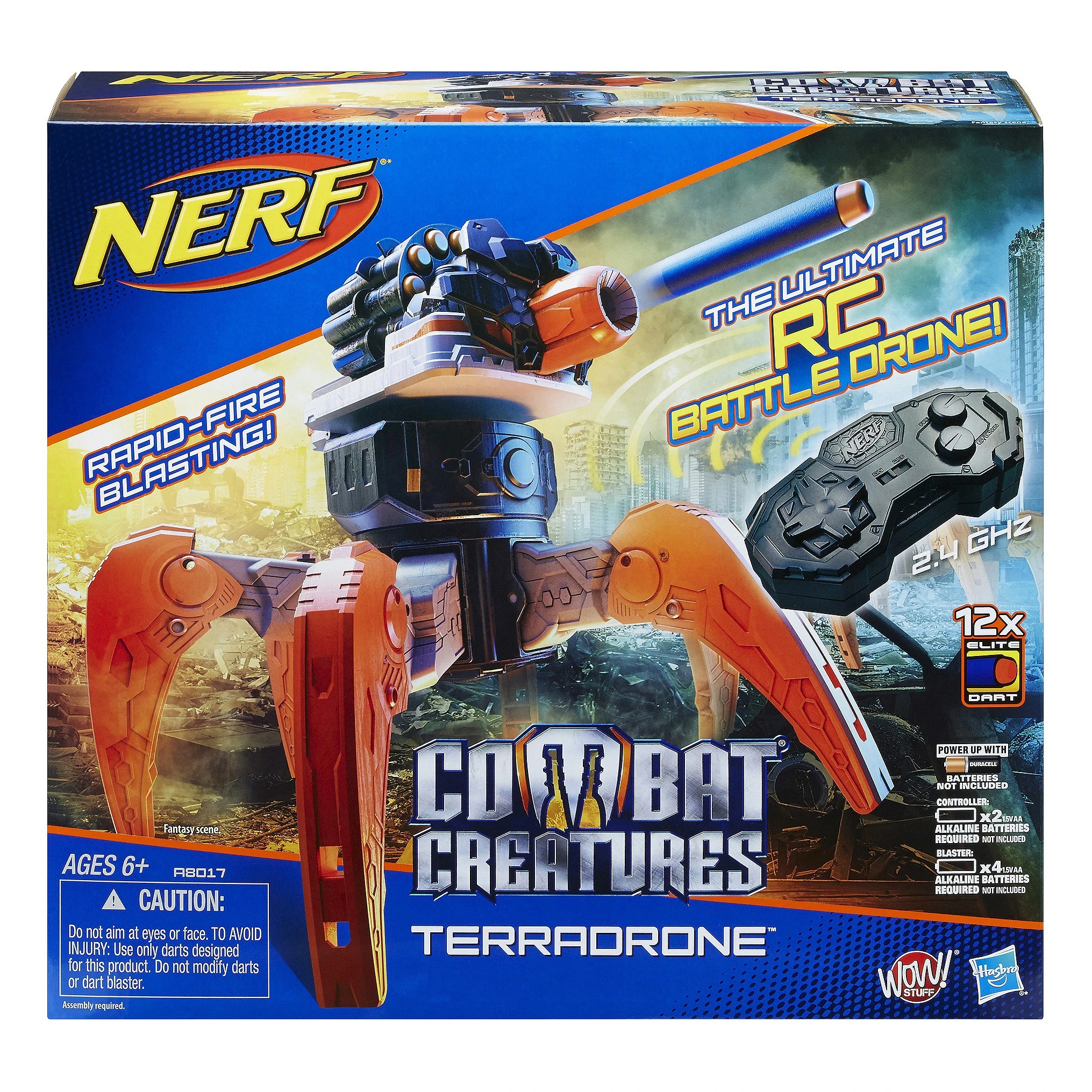 The TerraDrone is a Nerf-branded Wow! Stuff product that was released in fall of 2014 under the Combat Creatures series.[1] It requires four "AA" batteries to be operated.[1]